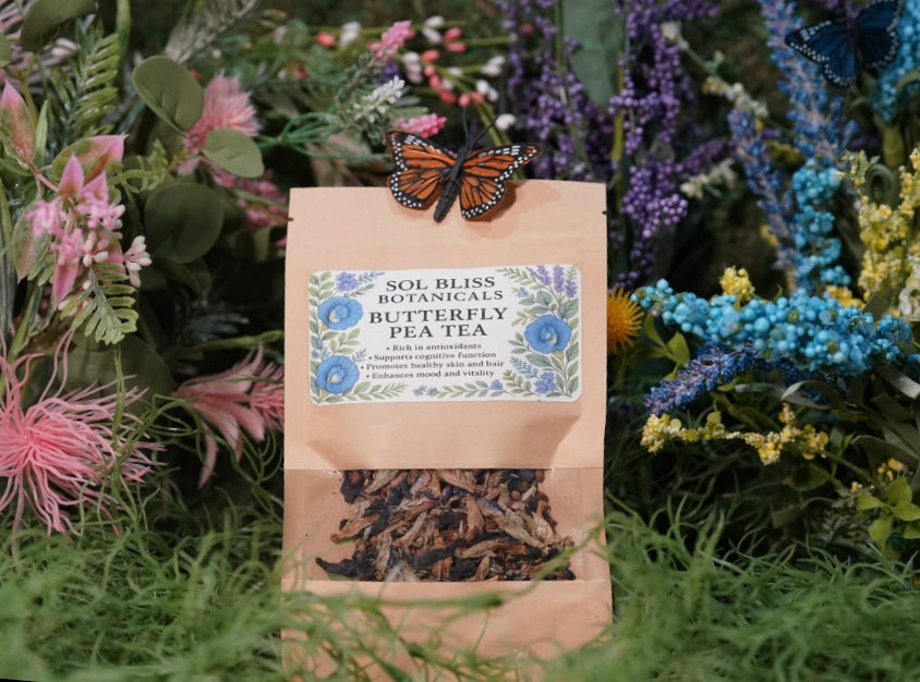 Butterfly Pea Flower has been cherished throughout Southeast Asia for centuries as a tonic for the mind and spirit. Its vivid sapphire hue comes from natural antioxidants called anthocyanins, which support healthy skin, hair, and cellular repair. This gentle herb also helps quiet mental chatter, soothe the nervous system, and sharpen focus with a calm, steady clarity.