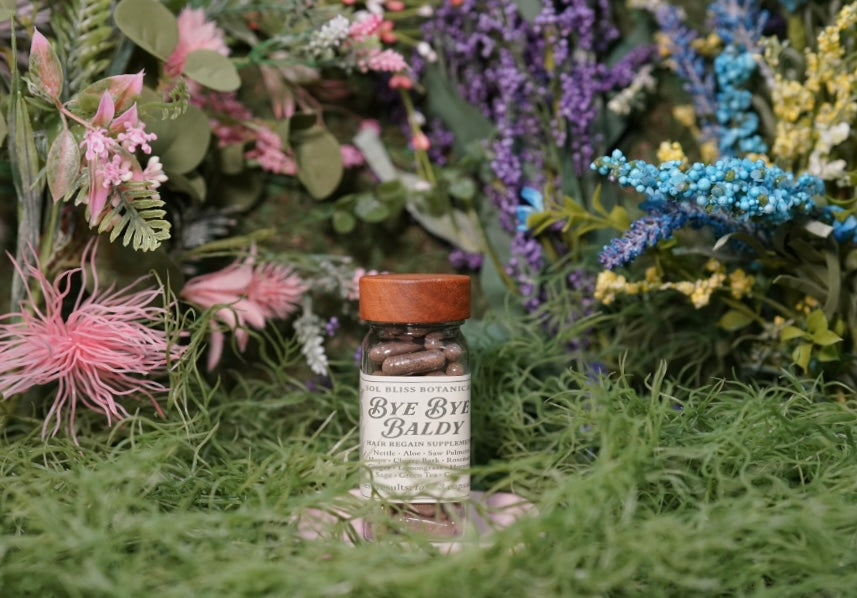 Bye Bye Baldy hair growth capsules combine a powerful blend of natural ingredients including nettle, aloe, saw palmetto, hops, cherry bark, rosemary, ginger, lemongrass, horsetail, sage, green tea, and cayenne. This unique formula works synergistically to stimulate hair follicles, promote scalp health, and support thicker, fuller hair growth. Designed for those seeking an effective, natural way to combat thinning hair, these capsules provide essential nutrients that nourish from within, helping you regain confidence and a revitalized look. Embrace a fuller head of hair with Bye Bye Baldy’s carefully crafted botanical blend.